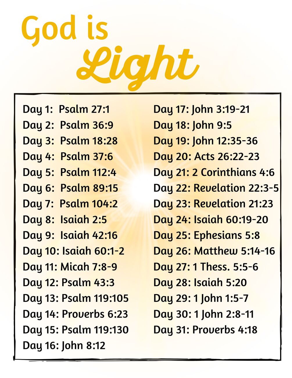 God is Light Bible reading plan
